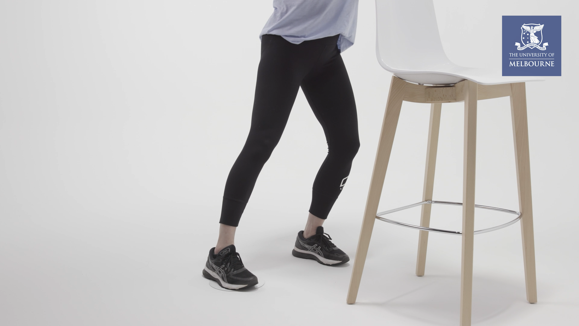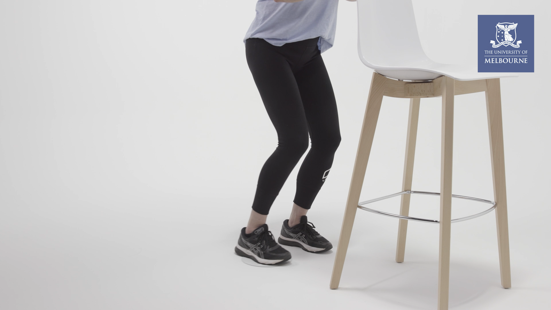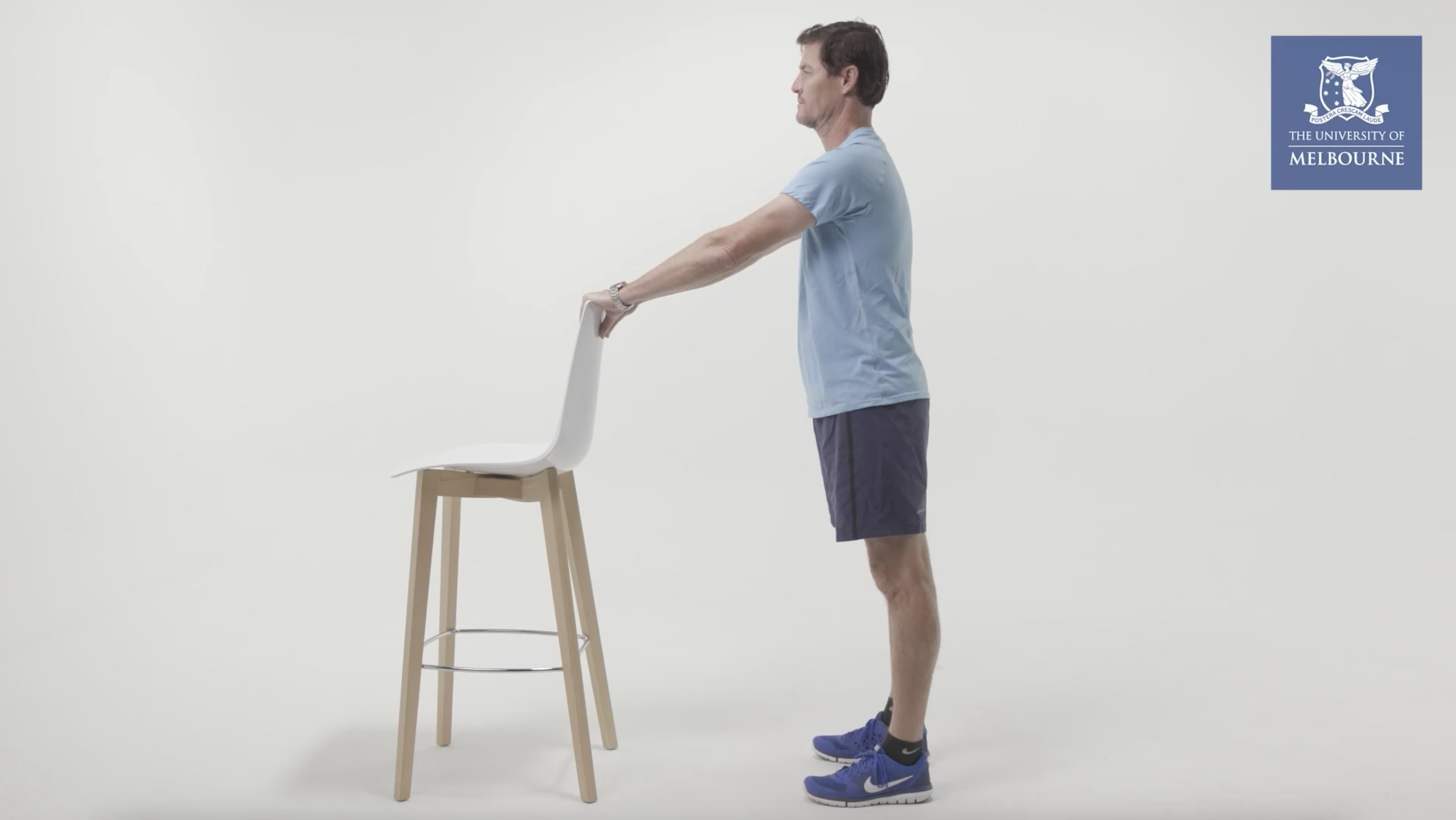 Stand with a chair in front of you. Lightly hold the back of the chair for balance.